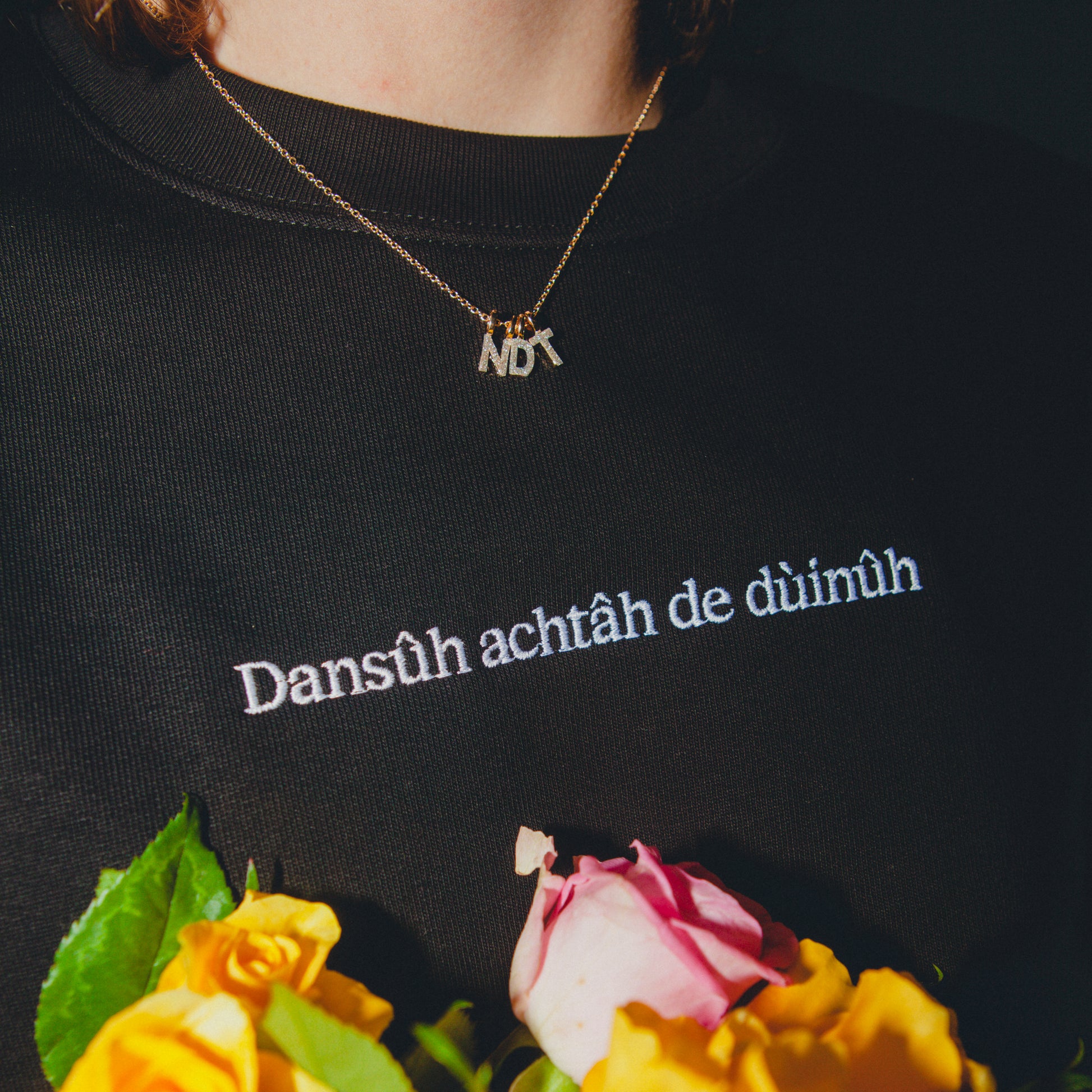 Deze zwarte trui is stoer, comfortabel en een knipoog naar onze roots: achtâh de dùinûh, waar het allemaal begon.